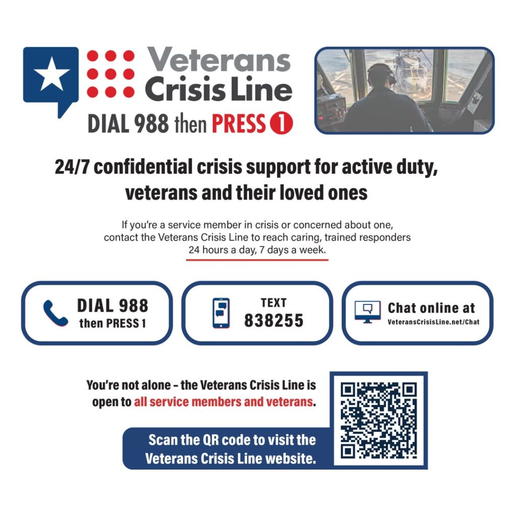 Remember the Veterans Crisis Line information in that image? Keep those numbers handy: